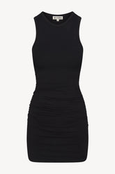 ÉTERNE's Carrie Dress is crafted from a soft jersey modal blend, featuring ruched side detailing, a slim fit, and mini length—a versatile essential for day to night.